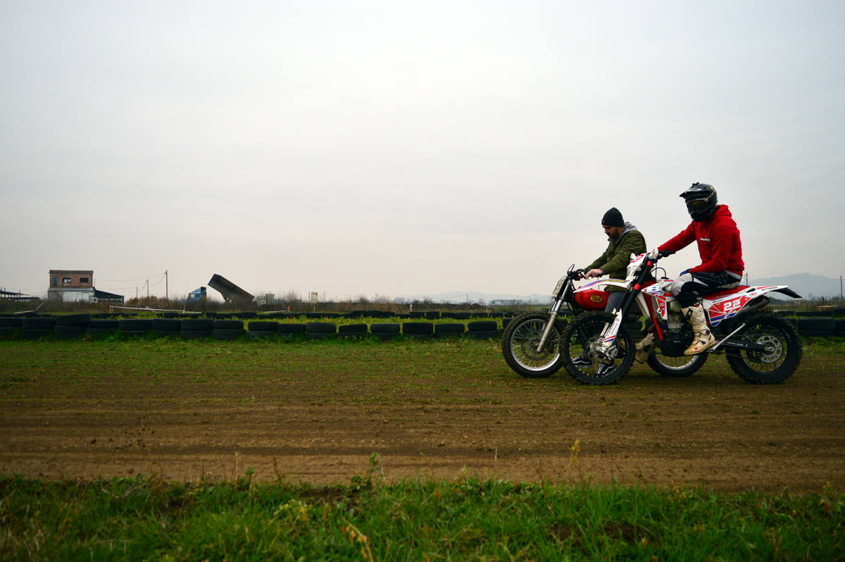 Giannis & Nasos Trigas, both racing enduro for years, with Giannis having won a couple of National titles too, have turned their land into a single trail practice track to train enduro but what we were really hooked on was their fresh 1/6 mile dirt oval.