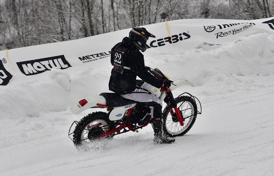 Riding the old Montesa on ice was a pleasant surprise even though a few carb adjustments were done to adjust in the high altitude and low temperatures. After the first two passes, Giannis started pushing and improving his lap time.