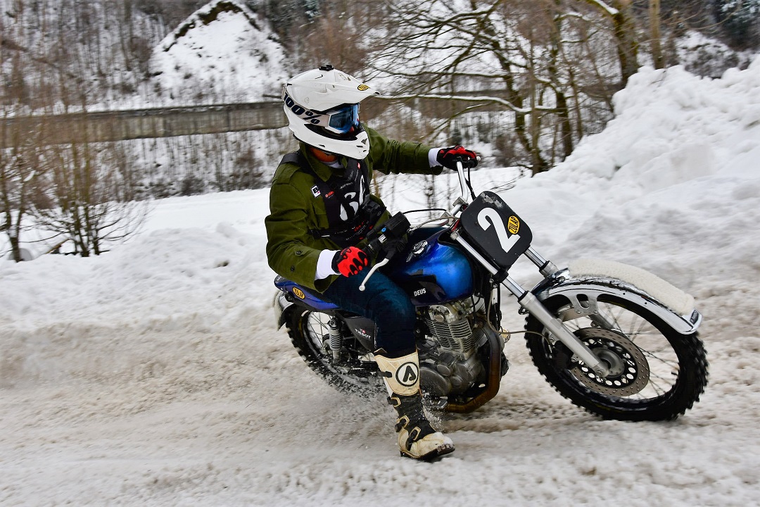 Riding the old Montesa on ice was a pleasant surprise even though a few carb adjustments were done to adjust in the high altitude and low temperatures. After the first two passes, Giannis started pushing and improving his lap time.